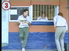 General Movimiento de cámara: travelling Altura: normal Angulación: frente Foreground: en parte del paneo se puede leer una columna. Nota: las dos mujeres entran por la puerta y se dirigen hacia la boletería. Salen de plano por un momento y la cámara se detiene en donde están ellas. Al retirarse aparece un hombre para sacar su boleto. |